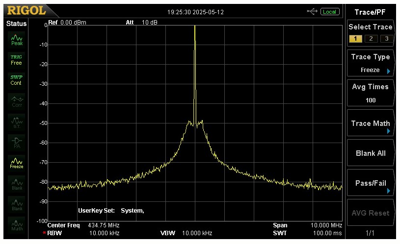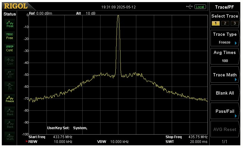dieses Exemplar mit diesem Sendermodul (Ohne Filter zwischen Modul und Antennenanschluss):