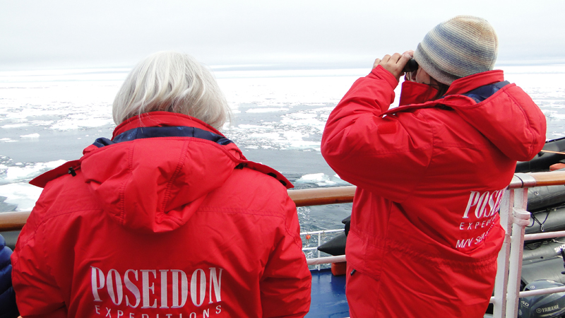 Unser erster Seetag hat viel zu bieten. Als erstes entdecken wir drei Eisbären auf dem Eis, allerdings in recht
